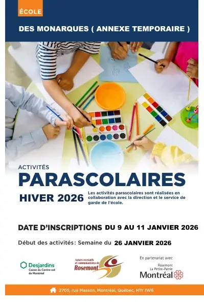 En collaboration étroite avec de nombreuses écoles primaires du quartier de Rosemont, nous proposons depuis plus de 15 ans une programmation parascolaire riche en animation et en divertissement. Notre engagement se concentre sur la qualité et la proximité avec les écoles, offrant ainsi un service accessible et de haut niveau.
